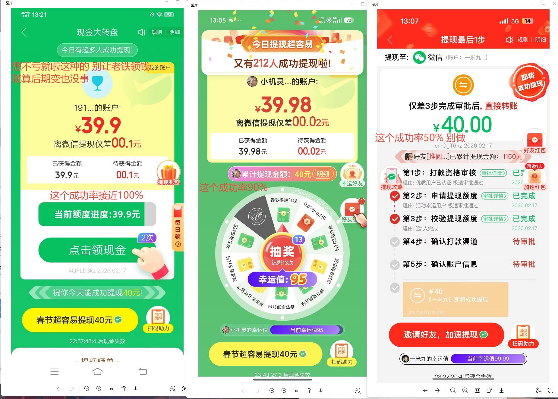 他提现了分你20 你赚16.5 他赚20 一个号两次 你赚33 他赚40