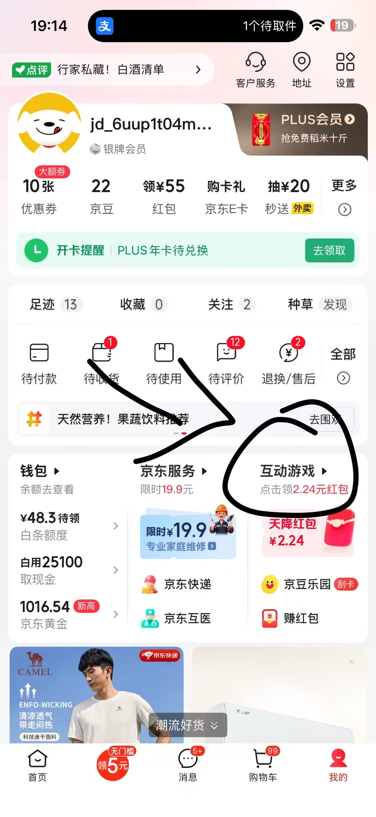 点开京东APP-我的-互动游戏