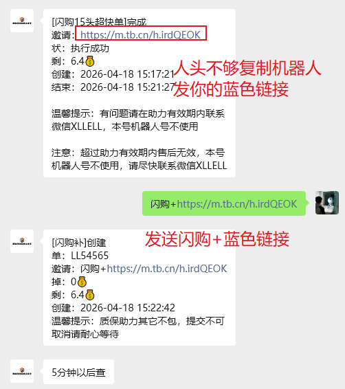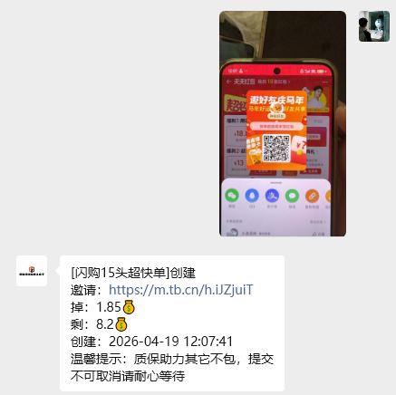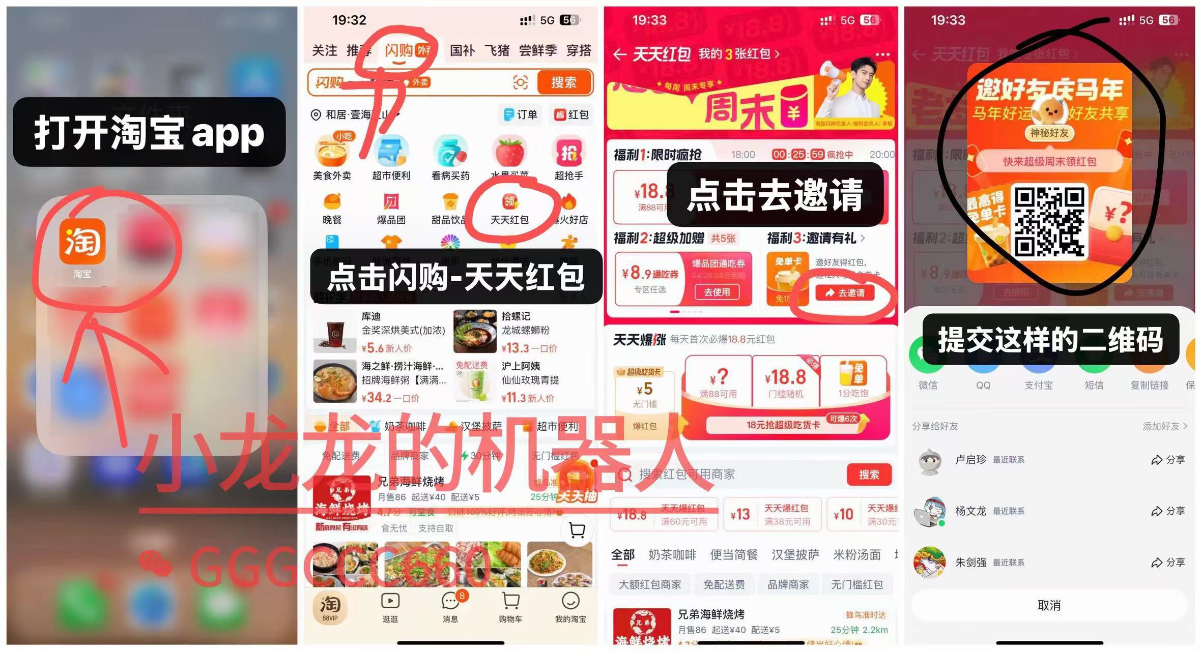 第二步:按照步骤打开淘宝-闪购-天天红包-获取二维码-发给机器人